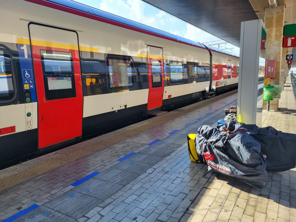 In Venedig hatten wir 50 Minuten Zeit um umzusteigen und dann die Fahrräder erneut zusammenzufalten, damit wir im Direktzug Venedig – Zürich mitreisen konnten.