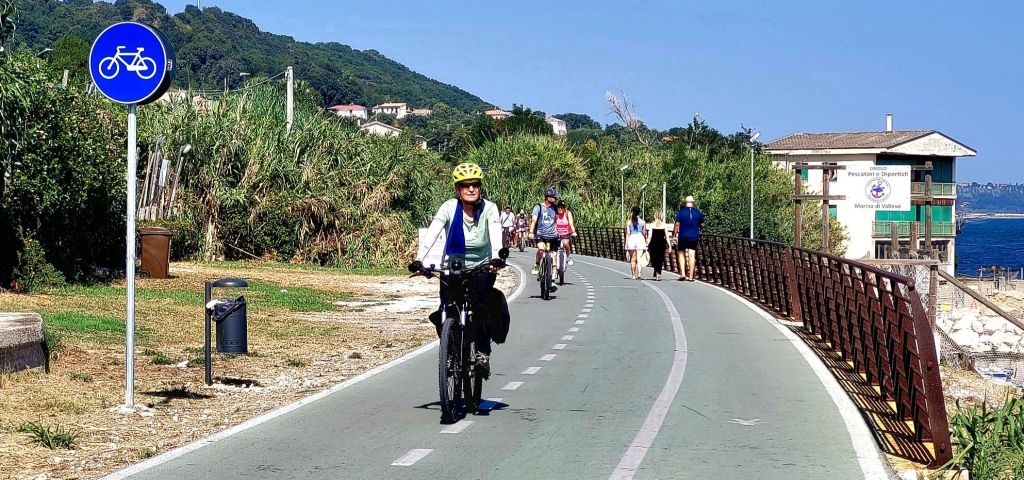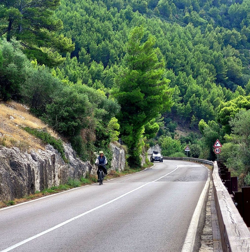 Wir radelten der Küstenstrasse entlang, die entgegen meinen Bedenken, nur sehr schwach befahren war. Auch das ist in der Hochsaison ganz anders. Das wissen wohl auch die diversen Torenanbieter die hier verschiedene Formen von Fahrrad Ferien anbieten. Da gibt es das volle Programm mit E-Bike, Gepäcktransport sowie Begleitfahrzeug mit Veloanhänger, wo man jederzeit ausstiegen kann, bis hin zur „Individualtour“, wo man vor Ort ein Fahrrad und die Route entlang der vorgebuchten Hotel’s  bekommt. Das Gepäck wird auf Wunsch von Hotel zu Hotel gefahren. So sahen wir heute einige Gruppen und auch Paare, die mit den unterschiedlichsten Tourenformen hier unterwegs waren.