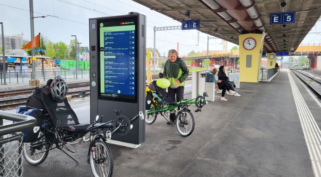 Auf dem Bahnsteig baute ich mein Rad wieder zusammen und musste aufpassen, dass die starken Windböen mit nichts davon bliesen.