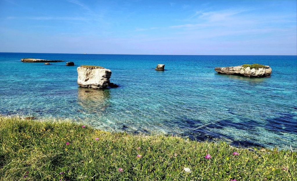 Beim Start in Otranto war der Himmel noch blau und wir starteten gut mit Sonnenschutz eingecremt zur unserer finalen Etappe nach Lecce. Auch heute zeigte sich der Salent nochmals von seiner schönsten Seite. Blühende Wiesen, imposante Küsten und ruhige Strassen, auf denen das Fahrradfahren einfach ein Vergnügen ist.