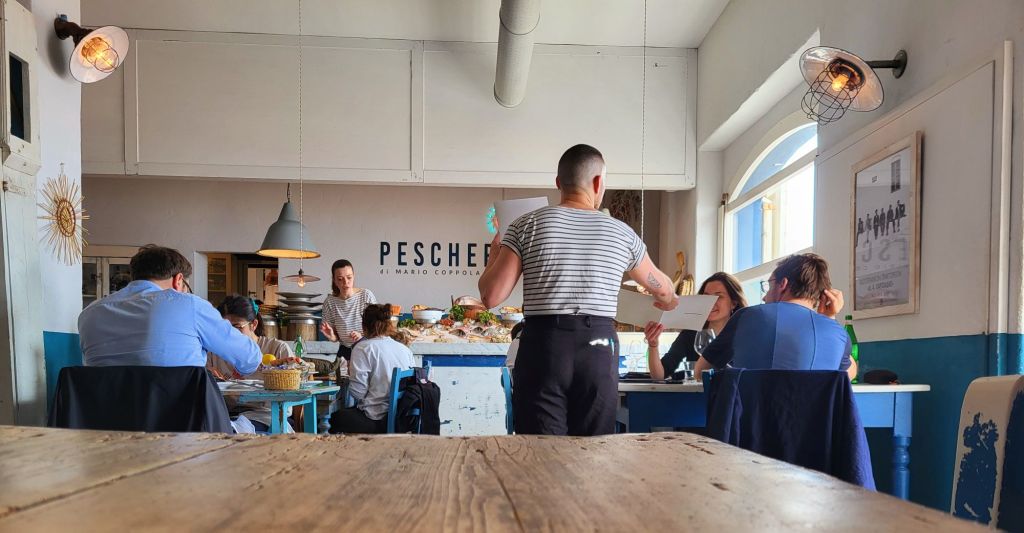 In Pizza Cannone stoppten wir spontan an einem kleinen Lokal. Es war kurz vor halb ein Uhr Mittags, also Zeit etwas zu essen. Dass wir hier wohl ein beliebtes Fischlokal erwischt hatten, merkten wir kurz darauf, als immer mehr Gäste an diesem gewöhnlichen Donnerstagmittag auftauchten. Viele hatten eine Reservation, so dass wir froh waren doch noch einen Tisch zu bekommen.