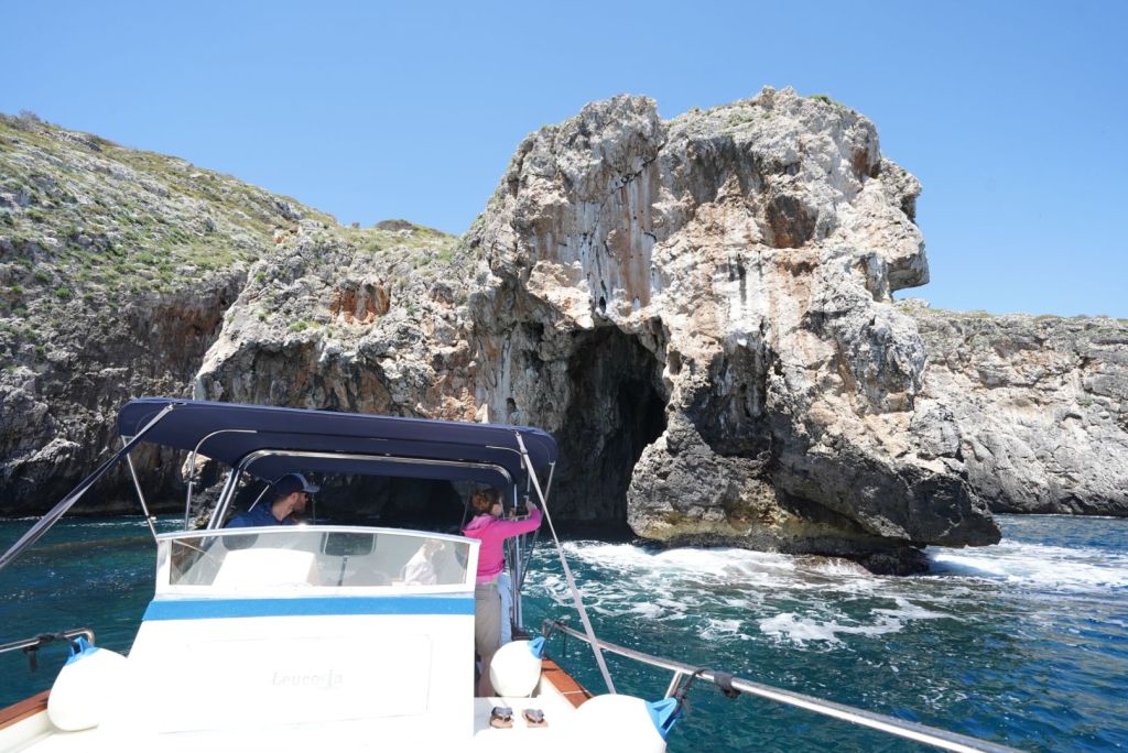 Gestern haben wir mit einem kleinen Ausflugsboot noch eine kurze Tour entlang der zerklüfteten Steilküste gemacht. Noch ist das Angebot an Bootstouren im Vergleich zu möglichen Kunden in einem Ungleichgewicht, so dass es auf den Booten recht entspannt zu und her geht. Mit uns waren noch eine italienische und zwei deutsche Frauen sowie ein jüngeres Paar aus Irland an Bord.