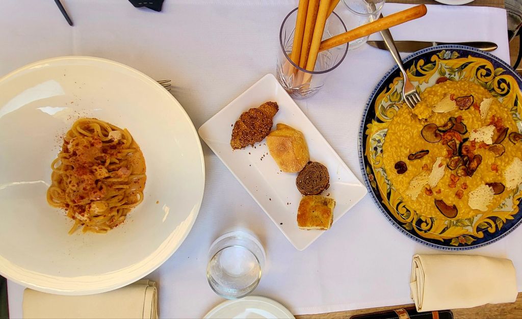 Nach einer erfrischenden Dusche geht es noch raus zum Abendessen, den Morgen brauchen wir ja etwas Energie. Wir tauchen ein in Gassen, die uns zumindest in gewissen Abschnitten dem Geruch nach eher an Nordafrika als an Italien erinnern.