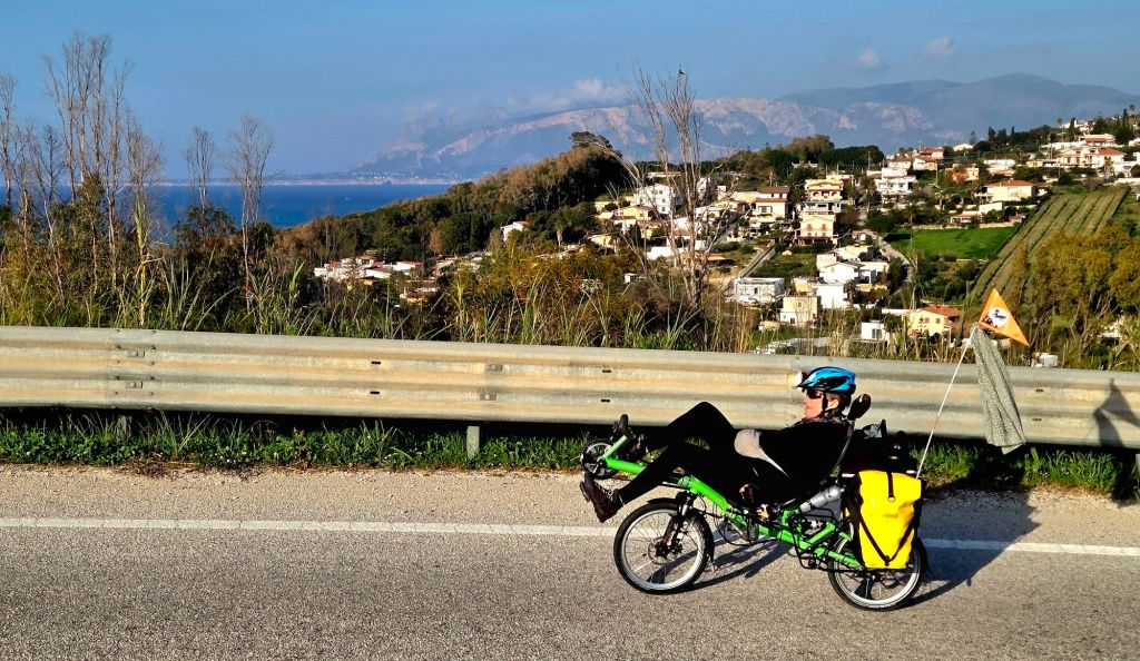 Nach dem Frühstück mussten wir uns zuerst einmal den Weg aus Palermo suchen. Dank Komoot klappte das nicht schlecht. Dazu mussten wir uns noch an die lokalen Verkehrsregeln gewöhnen. Regel Nr. 1: Erwarte immer links und rechts dass du überholt wirst. Vor allem die Motorradfahrer nützen jede noch so kleine Lücke. Also immer in den Rückspiegel schauen. Zum Glück haben unsere Lieger zwei davon. Dann gibt es ab und zu ein Verkehrsknoten, das heisst, alle blockieren sich gegenseitig und es gibt kein vor und zurück. In solchen Momenten wird intensiv von der Hupe gebrauch gemacht, obwohl alle wissen, dass das nichts bringt. Scheint aber die Nerven zu beruhigen.