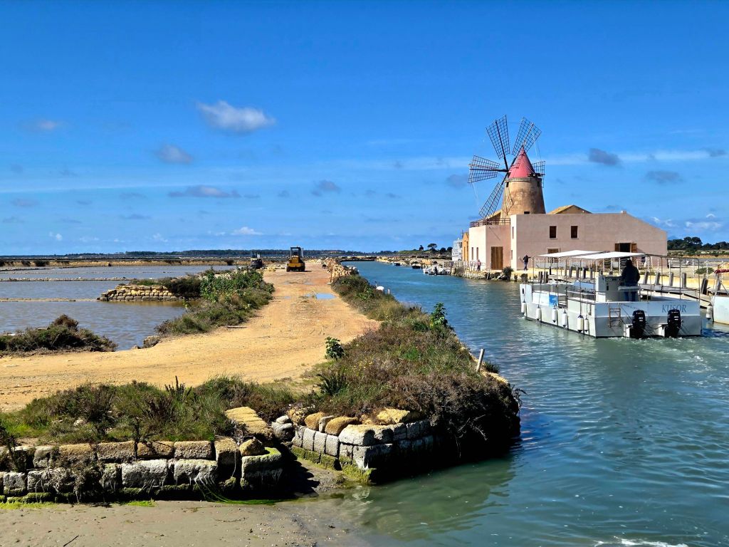 Nördlich von Marsala ist das offensichtliche Zentrum für den „Salinentourismus“. Es gab ein Besucherzentrum wo Bootsausflüge in die Salinen angeboten wurden. Noch hielt sich der Besucheransturm in Grenzen aber wer das mal besuchen will, ist wohl gut bedient die Hauptsaison zu meiden.