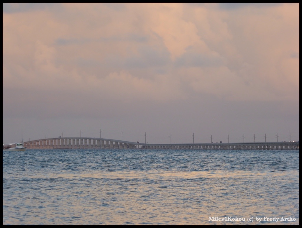 Das hatten wir ja gestern bereits geübt und so fühlten wir uns immer sicherer, auch wenn die Stellen manchmal gar eng wurden. Gegen 14 Uhr hatten wir nun wirklich Hunger, aber schon seit gut einer Stunde suchten wir vergeblich nach einer Verpflegungsmöglichkeit. Da tauchte beim Milemarker 80 wie eine Fatamorgana das „Midway Cafe“ auf. Es soll genau auf halbem Weg zwischen Miami und Key West liegen.