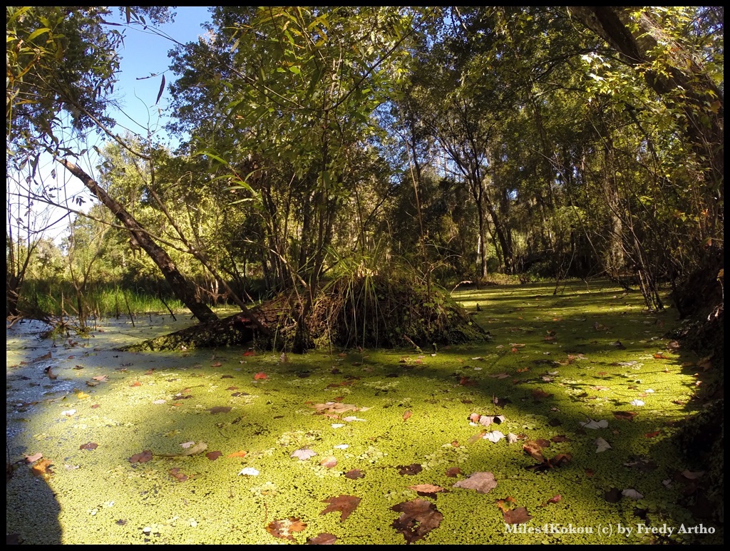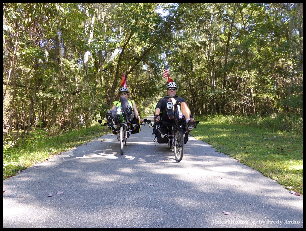 Über den Trail nach Gainesville, der nur für Pferde, Fussgänger und Radfahrer geöffnet ist, habe ich schon im Vorfeld der Reise in verschiedenen Blog’s gelesen und freute mich auf diesen Abschnitt ganz besonders. 26 km ohne brummende Motoren die von hinten heranbrausen, nebeneinander fahren und plaudern, dazu durch einen „1000 Wunderwald“ mit Bäumen und Moorlandschaften wie aus einem Märchen radeln, was will man mehr. Wir haben diese Fahrt sehr genossen.