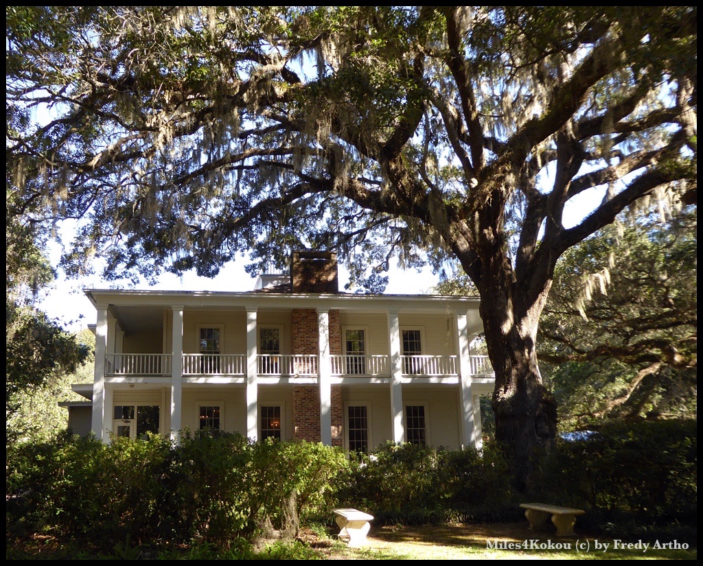 Naja, so richtig toll war das dann nicht. Im Garten stand ein schönes Haus, draussen Bäume mit „spanisch Moos“ und viel Schatten im Park.