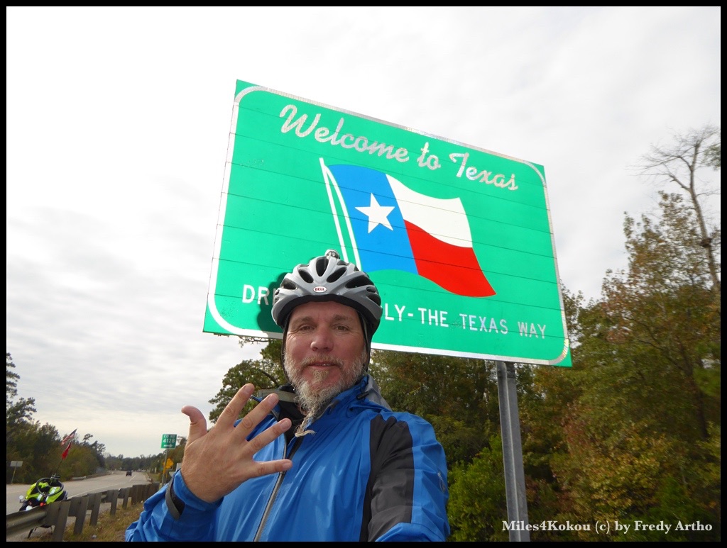 Texas, auf diese Grenze habe ich mich lange gefreut. Schon in der Vorbereitung zur Tour war klar, das Texas für die Reise zu einem „Schlüsselstaat“ werden wird. Irgendwo in der Mitte und riesengross. Er wird mich die nächsten drei Wochen „beschäftigen“, denn es gilt je nach Routenwahl zwischen 1500 – 1700 Kilometer zurückzulegen bevor ich das nächste „Grenzfoto“ in New Mexiko machen kann.