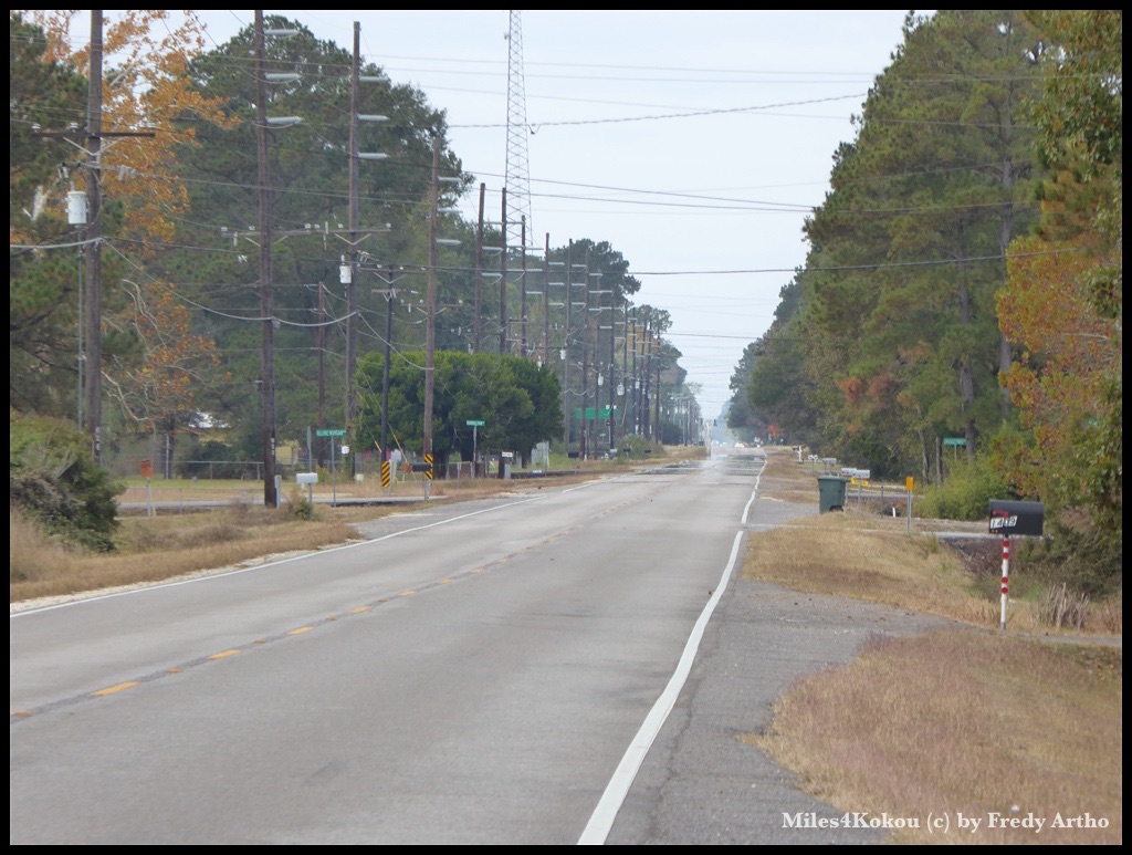Der heutige Tag war wettermässig wieder eher einer der Kategorie „darauf kann man verzichten“. Wenigstens war’s angekündigt und so konnte ich mich mental darauf einstellen. Trotzdem, wenn man sich dann am Morgen bei 5 Grad und Regen startklar macht, kann man sich schöneres vorstellen. Dazu der Wind der frontal auf mich zukam. Zum Glück war es verkehrsmässig ganz gut. In der Gegenrichtung stauten sich die Autos auf drei Spuren, aber in meine Richtung war nicht viel los. Auch heute wieder, danke Louisiana, gute Strassen und aufmerksame Autofahrer die hinter mir warteten bis Platz zum überholen war. Nach gut 10 Kilometern überholte mich ein Auto, fuhr rechts ran. Der Fahrer öffnete die Seitenscheibe und grüsste mich. Es war offenkundig, dass ich sein Interesse geweckt hatte. Also hielt ich neben ihm an und der rief entzückt herüber: „Mann, was für ein Fahrrad. So etwas habe ich noch nie gesehen. Fantastisch!“ Er stieg aus und wir plauderten etwas. Er wollte genau wissen woher, wohin und warum ich das mache. Warum ich nicht mit dem Auto fahre. Ich erklärte ihm, das ich das Glück hätte „Zeit“ zu haben und man mit dieser Reiseform das Land ganz anderes und intensiver erlebe. Er war so begeistert und sagte immer wieder „That’s great man!“ Als ich ihm anbot für ein Foto auf’s Velo zu sitzen hat er sich fast überschlagen vor Freude. Er machte auch von mir Fotos und ich glaube, er hat heute Abend zu Hause was zu erzählen.
