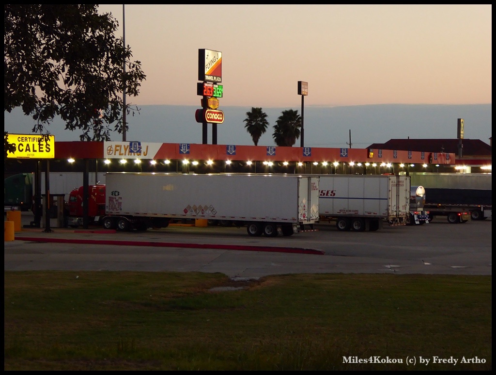 Da gab mir nochmals richtig Kraft und ich beschloss das Mittagessen sausen zu lassen, den bald führte mein Weg Richtung Süden und das war bei dem Wind genau das Richtige. Zudem wollte ich nicht riskieren, nochmals in den Regen zu kommen. Also mit „Powerade“ etwas Energie nachschütten und kräftig in die Pedale treten. Mit manchmal über 25 km/h „flog“ ich meinem heutigen Ziel entgegen. Ich hatte am Morgen via Handy ein Motel in Orange gebucht. Also sah ich mich schon fast unter der warmen Dusche als ich dort vorfuhr. Das gleich gegenüber ein grosser Truckstop mit Restaurant war, machte die Sache für mich noch komfortabler, da sich die Verpflegungsbedürfnisse von Lastwagenfahrern und mir im Moment ziemlich gleichen. So musste ich für die Verpflegung nicht weit gehen.