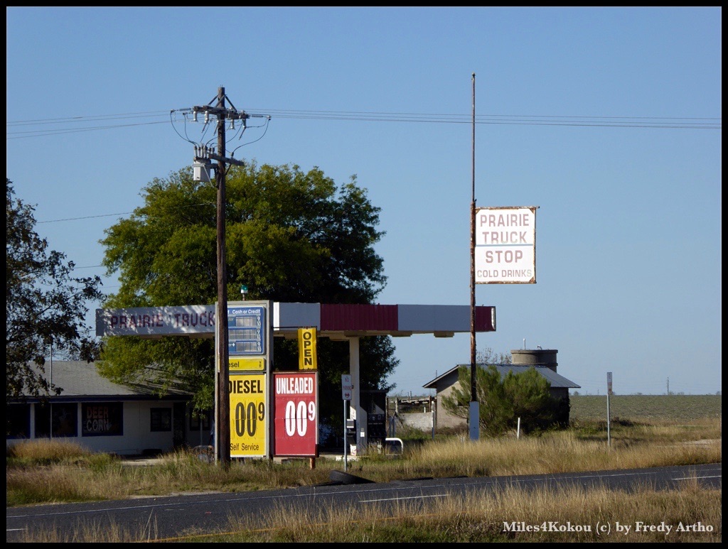 Verlassene Tankstelle am Strassenrand. Ob er durch die günstigen Benzinpreise ruiniert wurde?