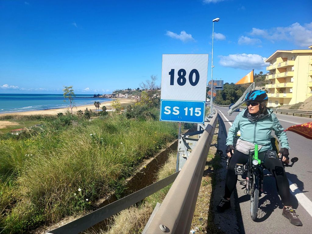Auf dieser Autofahrt konnten wir gleich feststellen, dass die geplante Route für uns nicht in Frage kam, da diese gleich nach dem Nachbarort Porto Empedocle durch einen Tunnel und gleichzeitig bergauf führte. So konnten wir gestern noch umplanen und entschieden uns heute lieber ein paar Kilometer auf der stärker befahrenen SS115 zu radeln.