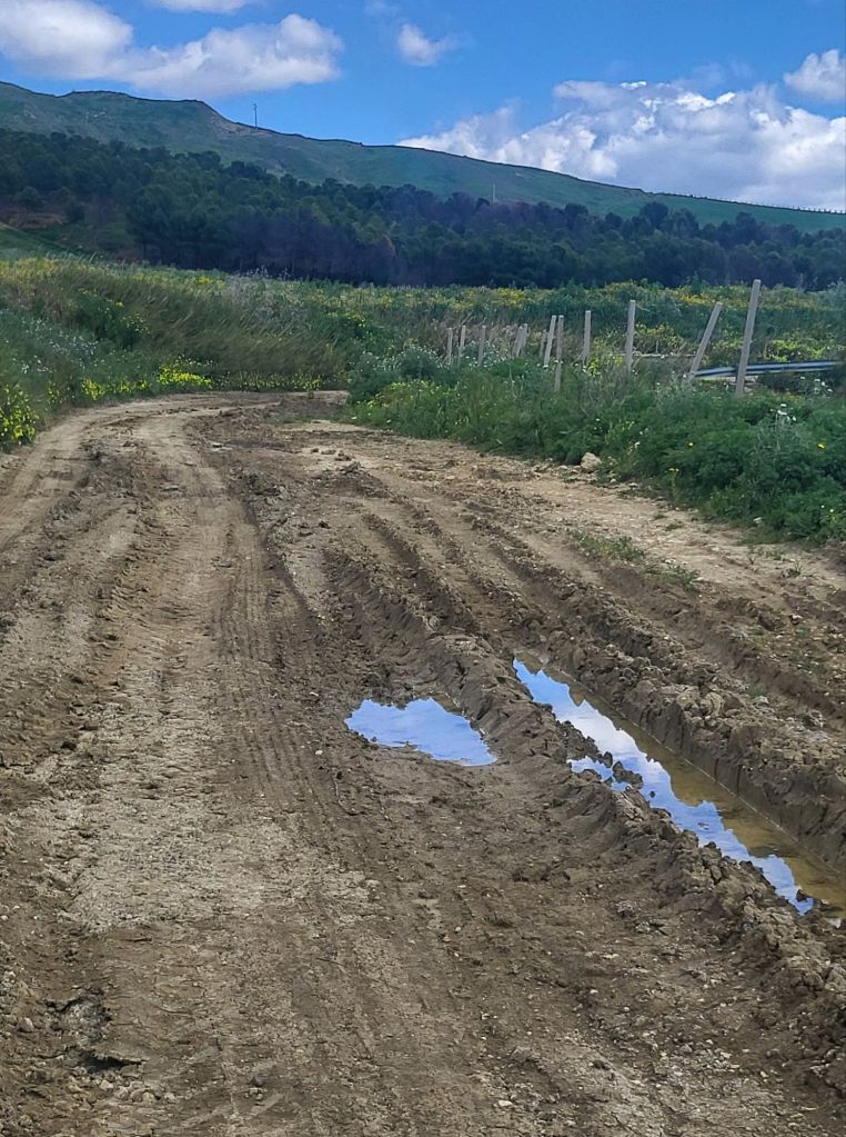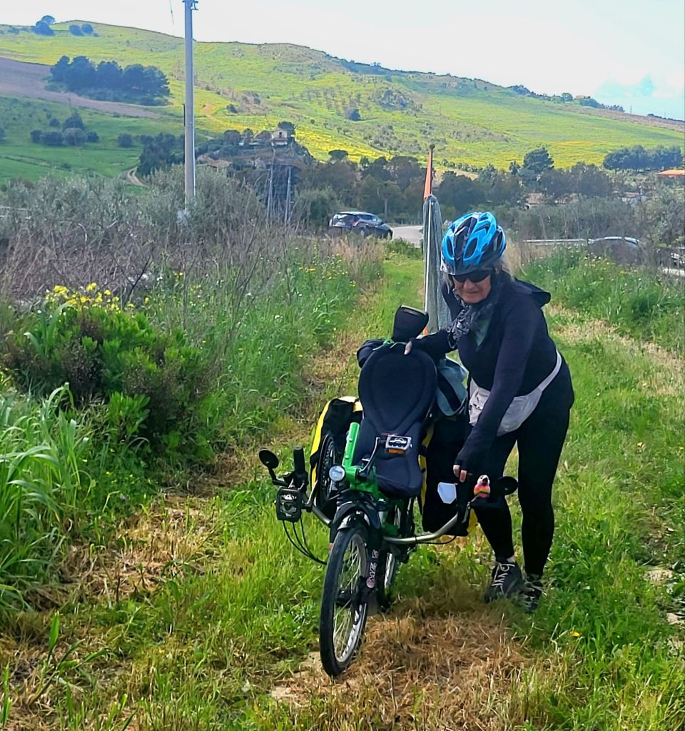 Doch leider gab es bald wieder für ein paar Kilometer keine Alternative zur SS115. Dazu führte sie in diesem Bereich auch noch durch ein Tunnel. Da musste ich nochmals ganz genau die Karte auf Komoot und das Satelitenbild anschauen. Siehe da, wenn wir die Räder über die Leitplanken hieften und etwas einem verwachsenen Trampelpfad folgten, würden wir auf eine alte Nebenstrasse kommen. Für uns war klar, das machen wir!