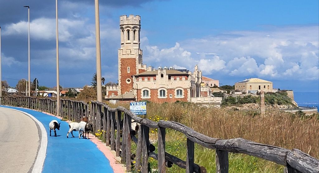 Was für eine traumhafte Etappe. Auf diese freuten wir uns schon lange und vor allem hatten wir am Ziel in Marzamemi ein wunderschönes Zimmer gebucht. Da war es ein leichtes heute Morgen bei bestem Radlerwetter loszufahren. Nachdem wir die Fahrräder aus Giancarlo’s Garage geholt und unsere Taschen wieder tourentauglich um gepackt hatten, rollten wir alles der Küste entlang Richtung Nordosten.