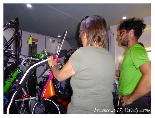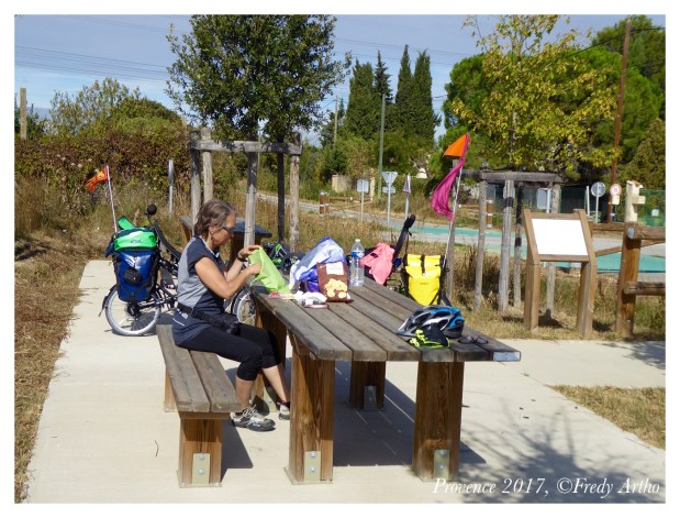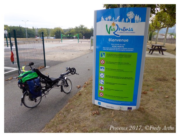 Fahrradtransport in Frankreich ist mit etwas Vorbereitung und Rädern die sich im Notfall zusammenklappen lassen kein Problem. Mit normalen Velos ist zumindest im TGV eine rechtzeitige Reservation wohl zwingend nötig. Die Radroute der Eurovelo 17 der Rhone entlang hat uns auf dem von uns befahrenen Abschnitt voll überzeugt. Auch wenn die Strecke noch nicht überall fertiggestellt ist, so waren in diesen Bereichen die vorhandenen Nebenstrassen ein würdiger Ersatz. Die Route ist zwar gut ausgeschildert, trotzdem muss ich nach den Erfahrungen der Donaureise und nun hier klar sagen das ein Navi, welches mit den richtigen Wegdaten gefüttert wurde, eine grosse Hilfe ist. Vor allem in dichten Städten trägt es allgemein zu einem entspannteren Fahren bei, da man sich immer wieder auch auf Feldwegen und in engen Gassen vergewissern kann, auf dem richtigen Weg zu sein.