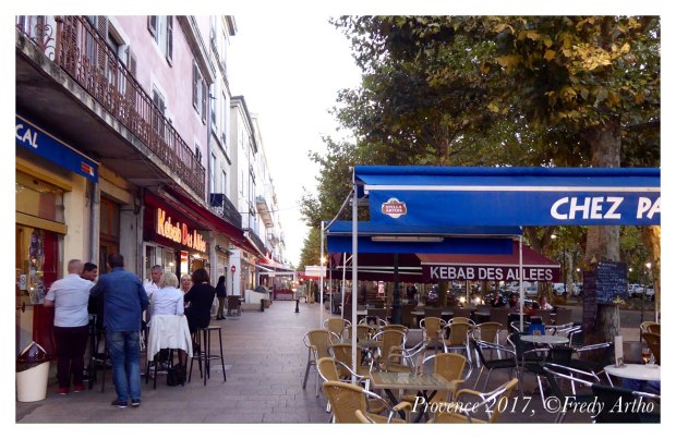 Heute war mal etwas früher Tagwache, denn wir wollten spätestens um 07.00 Uhr das Hotel verlassen. Für die gute vier Kilometer bis zum Bahnhof brauchten wir knapp 15 Minuten und genossen auf dieser Fahrt der Küste entlang die wunderschönen Farben welch die aufgehende Sonne an den Himmel malte. Dort angekommen mussten wir unsere Räder und Gepäck über Treppen durch die Unterführung aufs Abfahrgleis tragen. In Sète gibt es am Bahnhof weder einen Lift noch Rampen. Auf dem Perron haben wir dann die Räder zusammengeklappt und in unsere Taschen verstaut. Wir versuchten zwar am Vortag nochmals ein Velobillett für den Zug zu kaufen, aber alle Plätze waren schon gebucht. Die nächste offizielle Verbindung mit Fahrradmitnahme wäre erst mit Abfahrt am Mittag gewesen und so versuchten wir es damit, unsere Räder zusammengeklappt und in Taschen vertäut mitzunehmen.