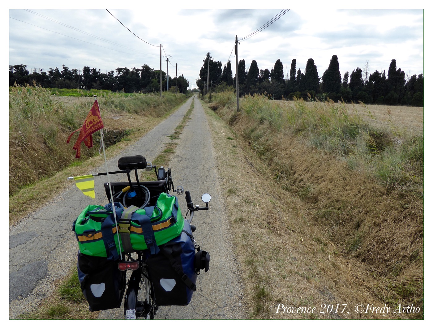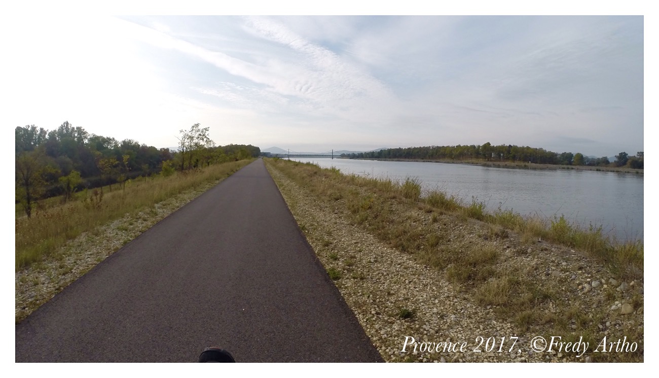 Fahrradtransport in Frankreich ist mit etwas Vorbereitung und Rädern die sich im Notfall zusammenklappen lassen kein Problem. Mit normalen Velos ist zumindest im TGV eine rechtzeitige Reservation wohl zwingend nötig. Die Radroute der Eurovelo 17 der Rhone entlang hat uns auf dem von uns befahrenen Abschnitt voll überzeugt. Auch wenn die Strecke noch nicht überall fertiggestellt ist, so waren in diesen Bereichen die vorhandenen Nebenstrassen ein würdiger Ersatz. Die Route ist zwar gut ausgeschildert, trotzdem muss ich nach den Erfahrungen der Donaureise und nun hier klar sagen das ein Navi, welches mit den richtigen Wegdaten gefüttert wurde, eine grosse Hilfe ist. Vor allem in dichten Städten trägt es allgemein zu einem entspannteren Fahren bei, da man sich immer wieder auch auf Feldwegen und in engen Gassen vergewissern kann, auf dem richtigen Weg zu sein.