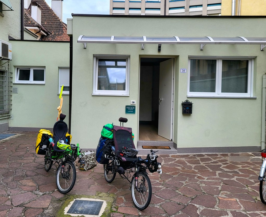 In Venedig hatten wir 50 Minuten Zeit um umzusteigen und dann die Fahrräder erneut zusammenzufalten, damit wir im Direktzug Venedig – Zürich mitreisen konnten.