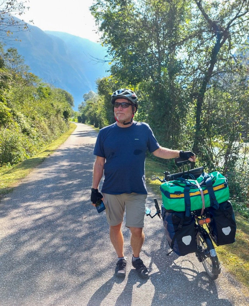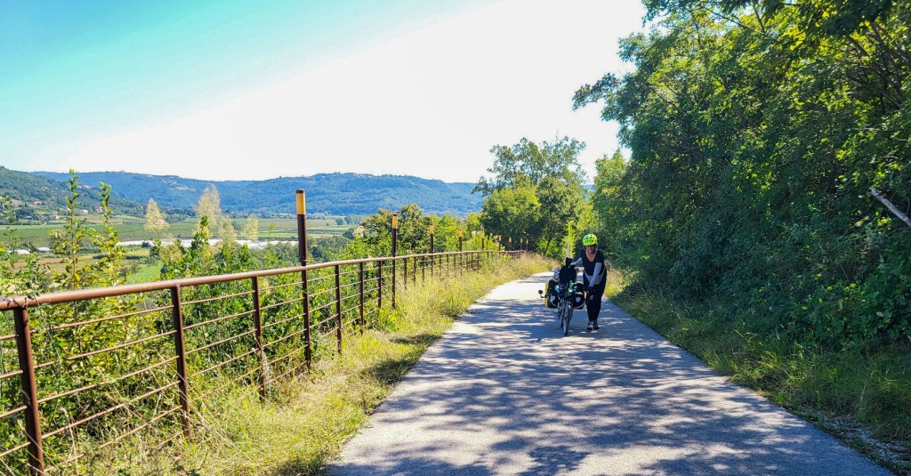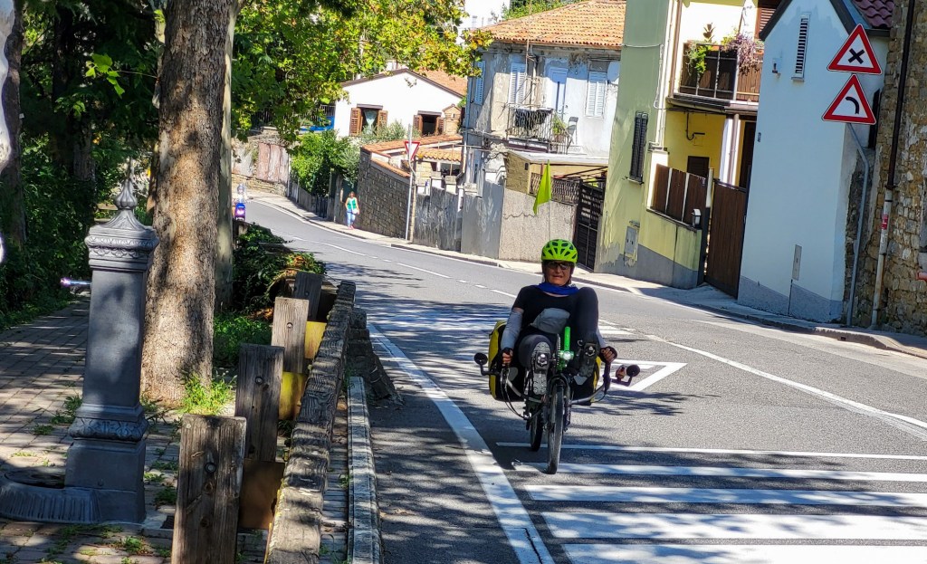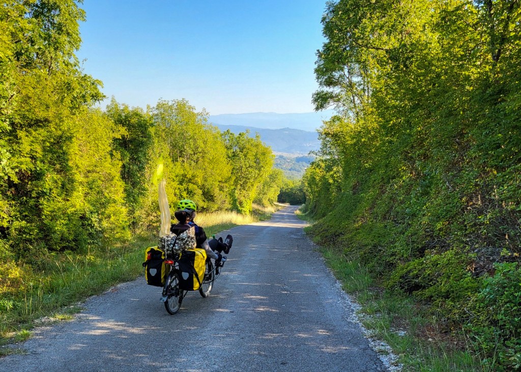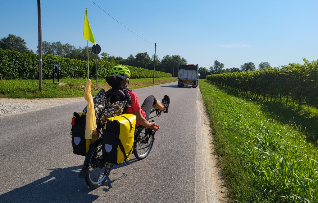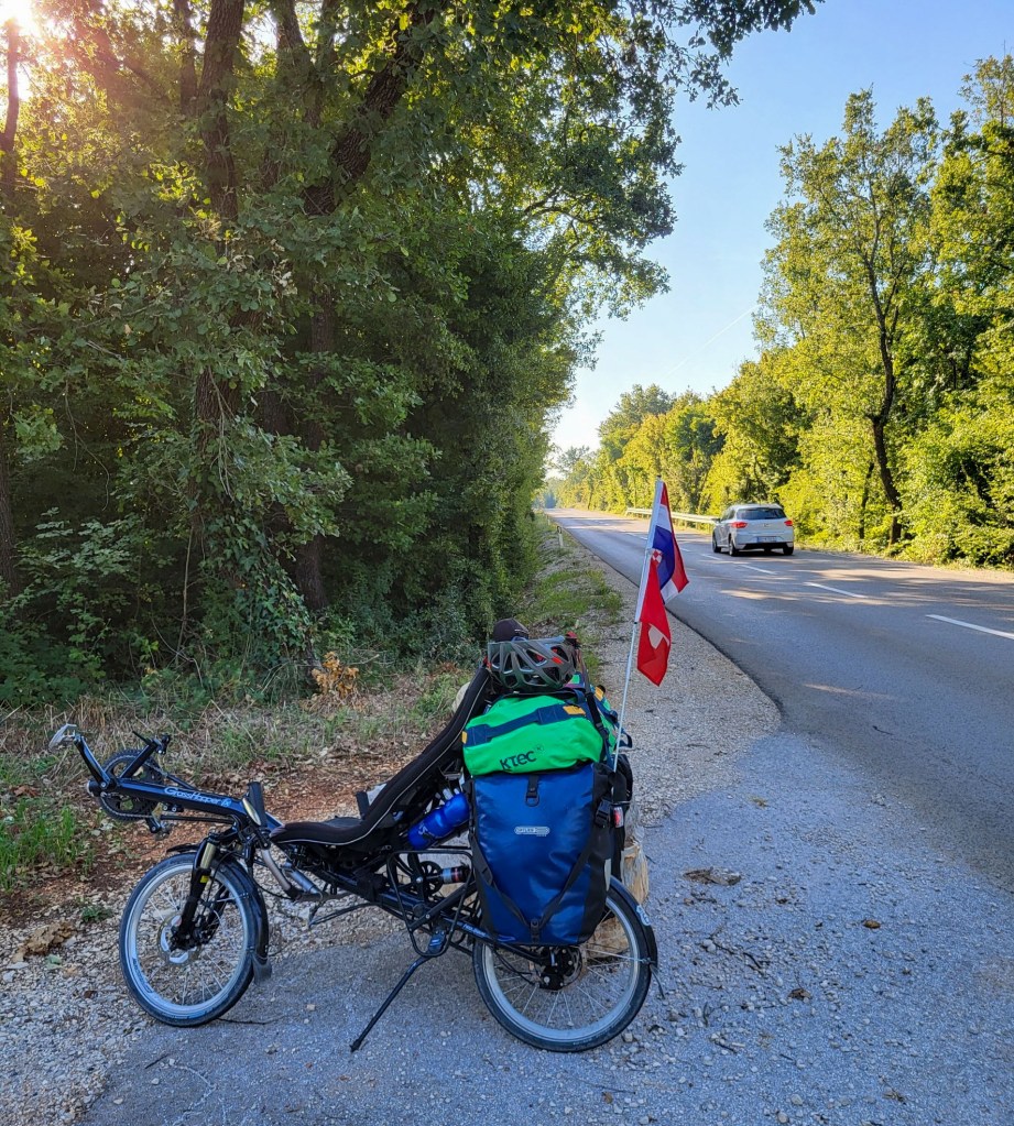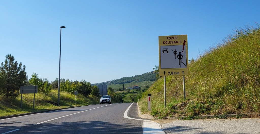 Upps, da mussten wir uns nun mal die Optionen überlegen. Am besten wäre es sicher die Räder zusammenzuklappen, aber was wenn sie als „zu gross“taxiert werden. Wir könnten auch den ganzen Weg der letzten Etappe zurückfahren und die Fähre nach Brestova nehmen und unseren gebuchten Taxi nach Triest dorthin bestellen. oder… oder …. oder…