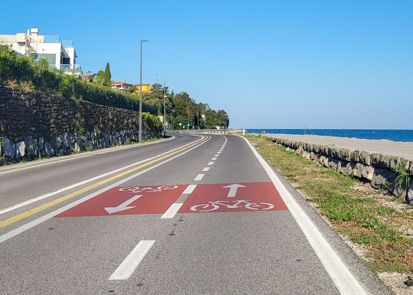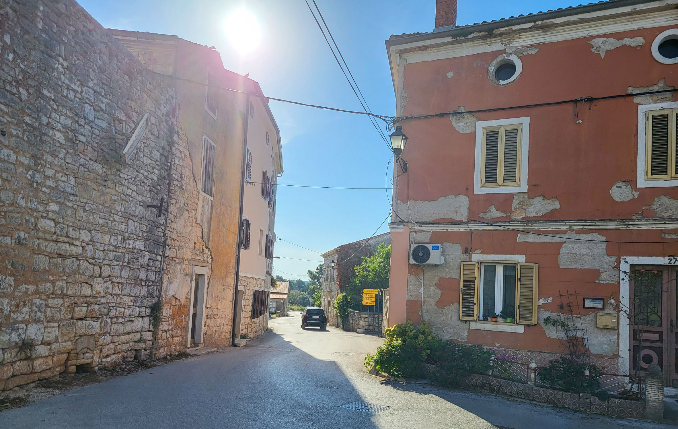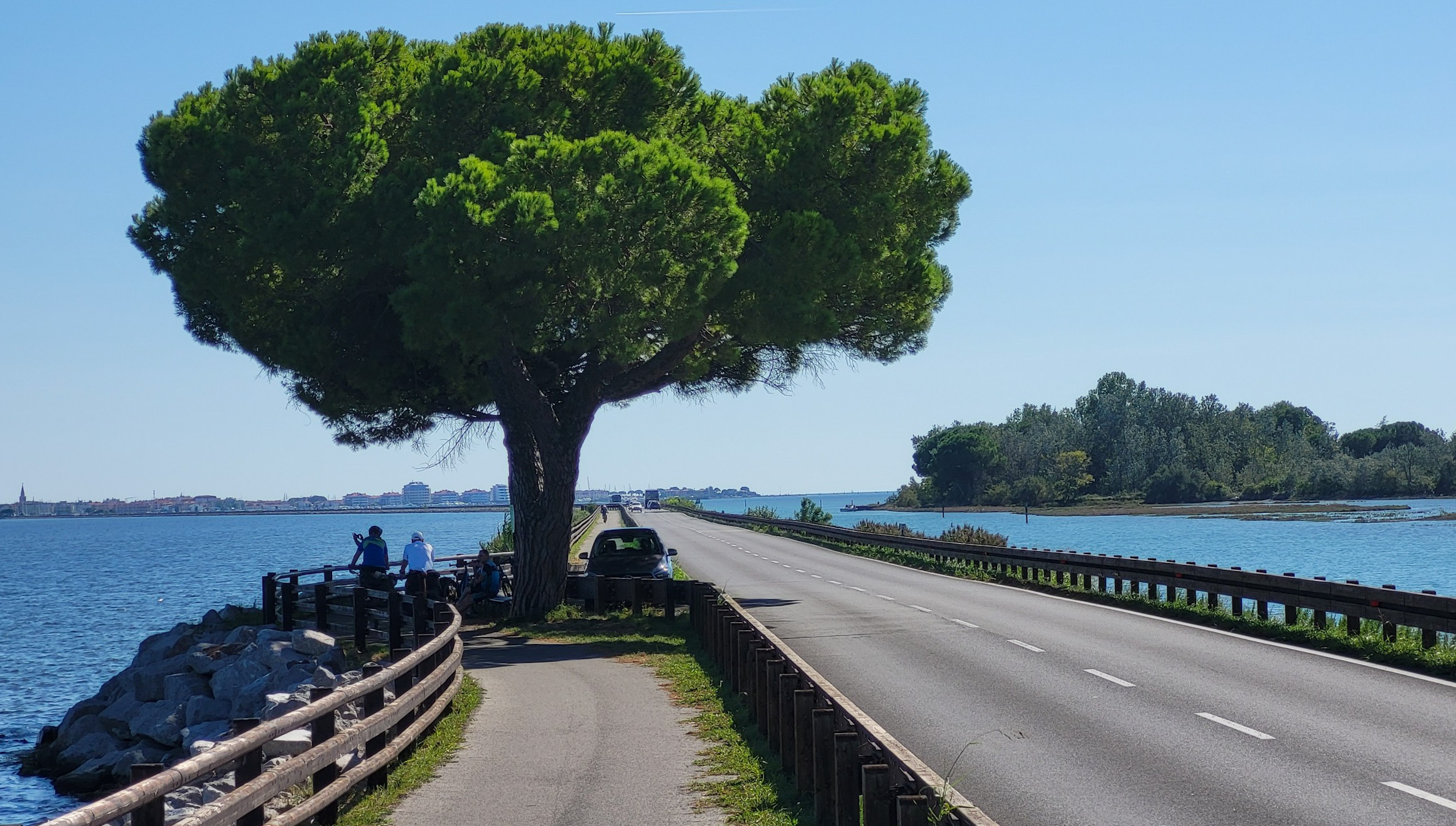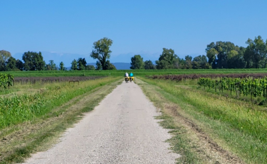 Upps, da mussten wir uns nun mal die Optionen überlegen. Am besten wäre es sicher die Räder zusammenzuklappen, aber was wenn sie als „zu gross“taxiert werden. Wir könnten auch den ganzen Weg der letzten Etappe zurückfahren und die Fähre nach Brestova nehmen und unseren gebuchten Taxi nach Triest dorthin bestellen. oder… oder …. oder…