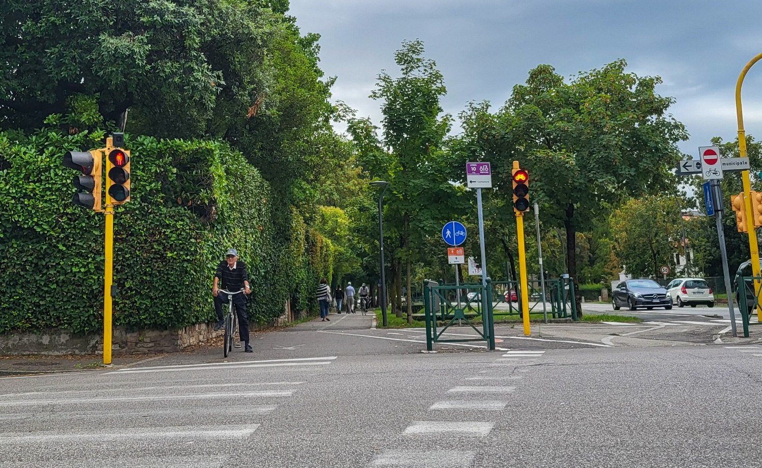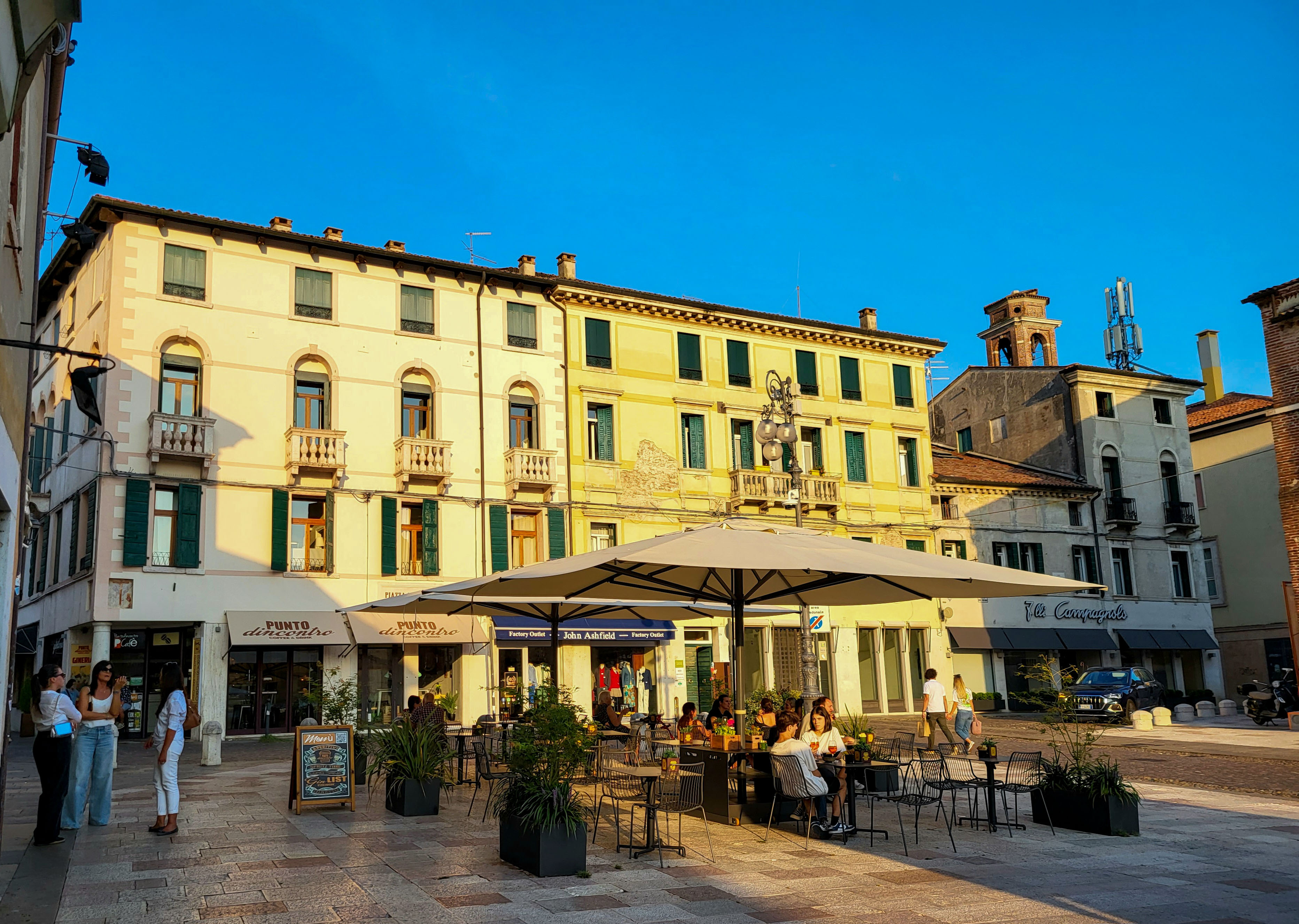 Wie vereinbart fuhr er uns für 120 Euro in gut 90 Minuten nach Triest zum Bahnhof. Dort bauten wir die Räder wieder zusammen um einfacher zum Zug zu kommen. Es war sogar noch genug Zeit für ein verspätetes Frühstück im Zentrum von Triest, bevor wir mit dem Zug Richtung Venedig fuhren.