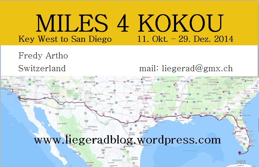 In der Zwischenzeit habe ich die Reise ja nun erfolgreich beendet. Viele Sponsoren haben mich motiviert und waren während der Reise treue Blogleser:innen, was mich täglich motiviert hat, einen Bericht zu schreiben. Bis am 30.10.2015 wurden bereits 10’000 sFr. für das Projekt „miles4kokou“ einbezahlt.