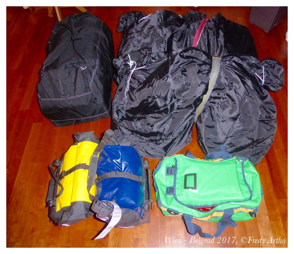 Das für uns absolut Beste ist, dass wir diese Räder mit wenigen Handgriffen verpacken und so problemlos und Zügen, Schiffen und Flugzeugen mitnehmen können. Das vergrössert unseren Tourenradius ungemein und „Einwegfahrten“ sind kein Problem, da man sich um den Radtransport kaum Sorgen machen muss. Mit normalen Rädern und erst recht mit „unfaltbaren“ Liegern kann gerade das Reisen in Zügen manchmal richtig mühsam werden. Auf immer mehr Zugsverbindungen sind Räder nicht zugelassen und uns Radlern bleiben nur langesame Verbindungen mit mehrmaligem Umsteigen. Mit einem Faltlieger ist das zum Glück etwas einfacher, wie wir in den letzten Jahren feststellen konnten. Wir haben im Herbst 17 in Sète einen gut besetzten TGV bestiegen, bei dem Fahrräder nur mit Reservation zugelassen waren. Da andere Radler schneller waren, waren keine Veloplätze mehr verfügbar. Also haben wir unser Lieger in die Radtaschen (Transzag) gesteckt und als Gepäck in den Zug genommen. Kein Problem. Für den Heimflug von unserer Donaureise im Sommer 17 haben wir die Räder ebenfalls nur im Tranzbag verpackt und mit Zurrgurten das Ganze kompakt und tragbar zusammengebunden. Die Spiegel und „aussenliegenden“ Pedale werden abgeschraubt und in die Reisetasche verpackt. Die Sitze abmontiert und zusammen mit zwei Ortliebtaschen in eine grosse, zusammenfaltbare Reisetasche gesteckt und schon waren wir „flugklar“. Der Radtransport hat je 60 sFr. extra gekostet und sie sind unversehrt in Zürich angekommen. (Direktflug mit SWISS Belgrad – Zürich)