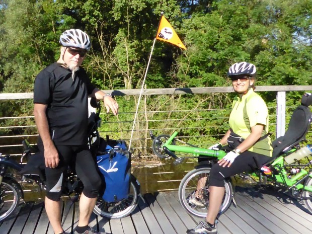 Das für uns absolut Beste ist, dass wir diese Räder mit wenigen Handgriffen verpacken und so problemlos und Zügen, Schiffen und Flugzeugen mitnehmen können. Das vergrössert unseren Tourenradius ungemein und „Einwegfahrten“ sind kein Problem, da man sich um den Radtransport kaum Sorgen machen muss. Mit normalen Rädern und erst recht mit „unfaltbaren“ Liegern kann gerade das Reisen in Zügen manchmal richtig mühsam werden. Auf immer mehr Zugsverbindungen sind Räder nicht zugelassen und uns Radlern bleiben nur langesame Verbindungen mit mehrmaligem Umsteigen. Mit einem Faltlieger ist das zum Glück etwas einfacher, wie wir in den letzten Jahren feststellen konnten. Wir haben im Herbst 17 in Sète einen gut besetzten TGV bestiegen, bei dem Fahrräder nur mit Reservation zugelassen waren. Da andere Radler schneller waren, waren keine Veloplätze mehr verfügbar. Also haben wir unser Lieger in die Radtaschen (Transzag) gesteckt und als Gepäck in den Zug genommen. Kein Problem. Für den Heimflug von unserer Donaureise im Sommer 17 haben wir die Räder ebenfalls nur im Tranzbag verpackt und mit Zurrgurten das Ganze kompakt und tragbar zusammengebunden. Die Spiegel und „aussenliegenden“ Pedale werden abgeschraubt und in die Reisetasche verpackt. Die Sitze abmontiert und zusammen mit zwei Ortliebtaschen in eine grosse, zusammenfaltbare Reisetasche gesteckt und schon waren wir „flugklar“. Der Radtransport hat je 60 sFr. extra gekostet und sie sind unversehrt in Zürich angekommen. (Direktflug mit SWISS Belgrad – Zürich)