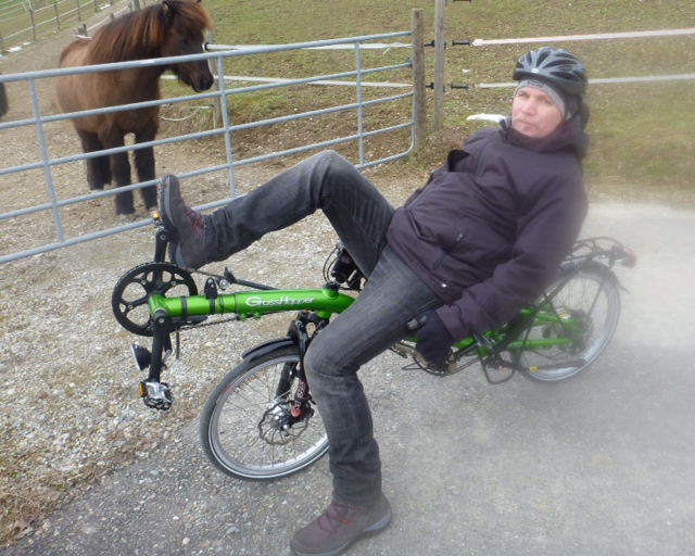 Wenn es kalt ist gibt es auf Grund der hochgelegten Beine bei einem Liegerad ganz neue Körperstellen die auskühlen können, z.B. zwischen den Beinen!